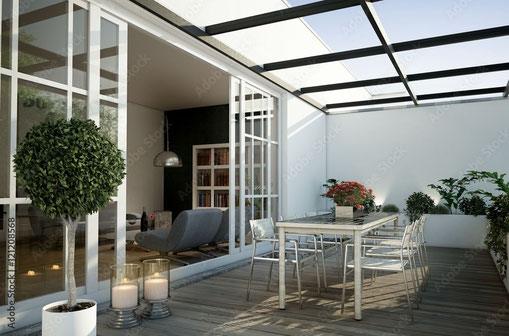 Mit einer modernen Terrassenüberdachung genießen Sie Ihre Terrasse bei jedem Wetter. Wir montieren hochwertige Überdachungen, die Schutz vor Regen